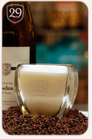 An eight-ounce soy candle with cotton wick that combines Georgia peaches, Napa Valley champagne, lime zest and spicy basil with 29’s own grape seed extract creating a fresh and modern scent. Featuring the highest quality of soy wax and the finest fragrances found, the candles are made in the United States.