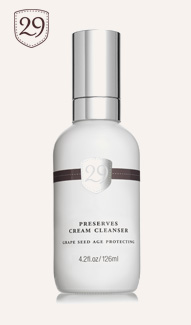 A rich and hydrating anti-aging cleanser, 29 Preserves Cream Cleanser features grape seed oil, sorbitan olivate (a natural emulsifier derived from Olive Oil) and grape seed extract, all naturally occurring in the Napa Valley region.